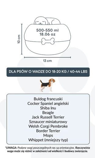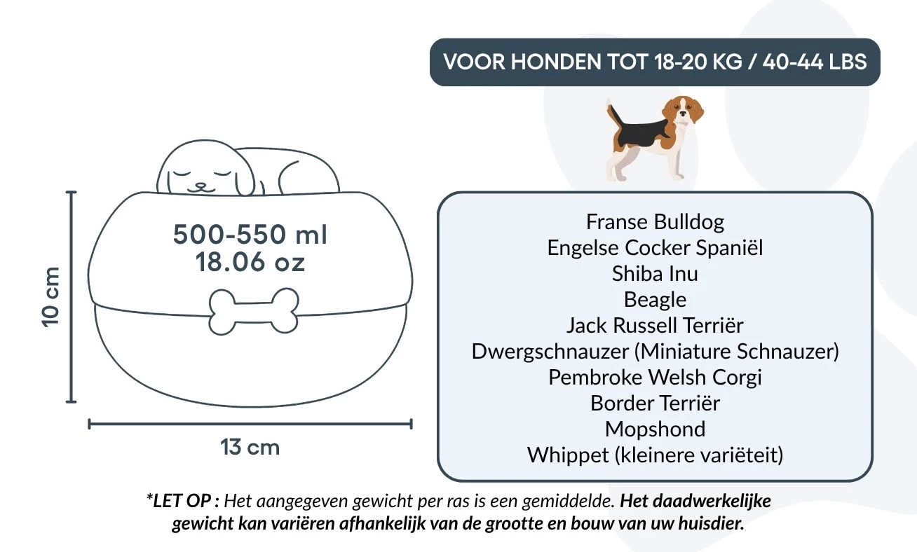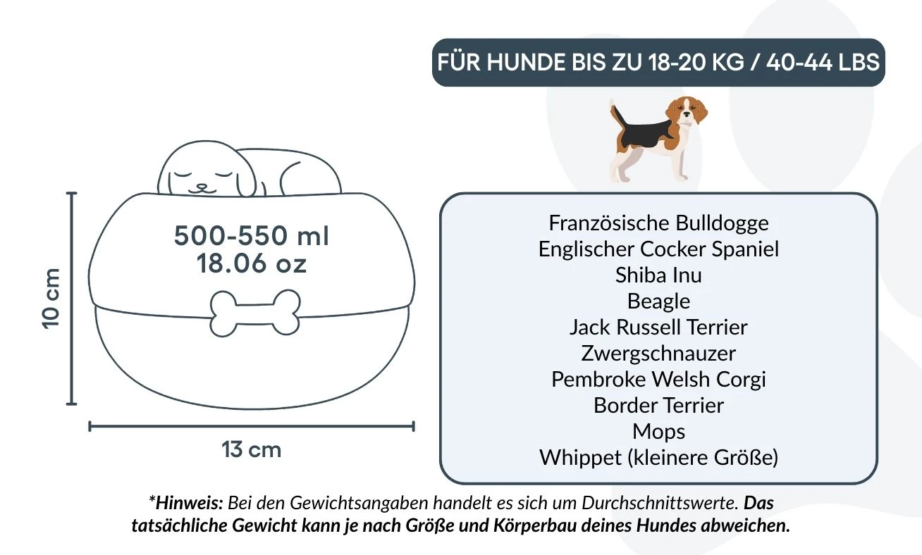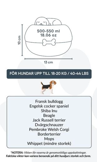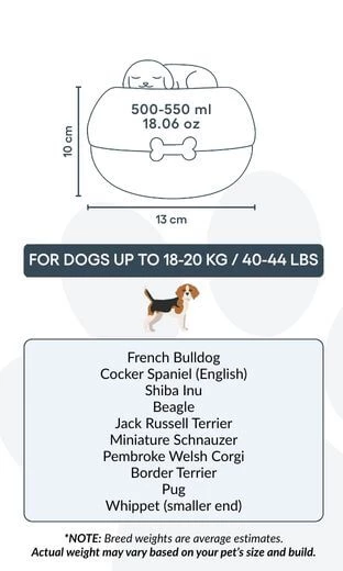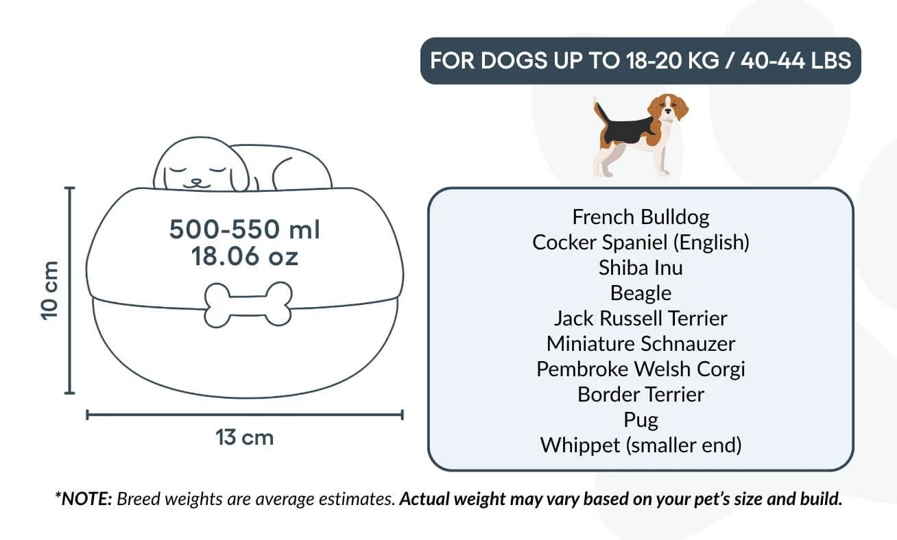 Size / Urn Capacity: 13 (W) x 13 (L) x 10 cm (H) / 283 g | ~500–550 ml / 18.06 oz | for dogs up to 18–20 kg / 40–44 lbs