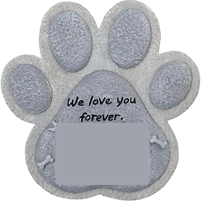 Commemorate the life of your beloved dog with this Paw-Shaped Pet Memorial Stone with Photo & Tribute, a thoughtful way to keep their memory alive in your garden. Designed in the shape of a paw, this heartfelt pet memorial stone features a secure photo frame, engraved message, and charming bone accents—creating a personal tribute to a much-loved companion.