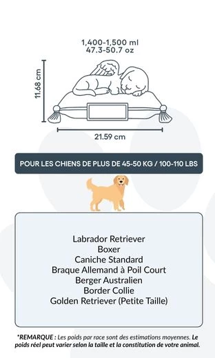 Common breeds that typically fit: Labrador Retriever, Boxer, Standard Poodle, German Shorthaired Pointer, Australian Shepherd, Border Collie, Golden Retriever (smaller builds).