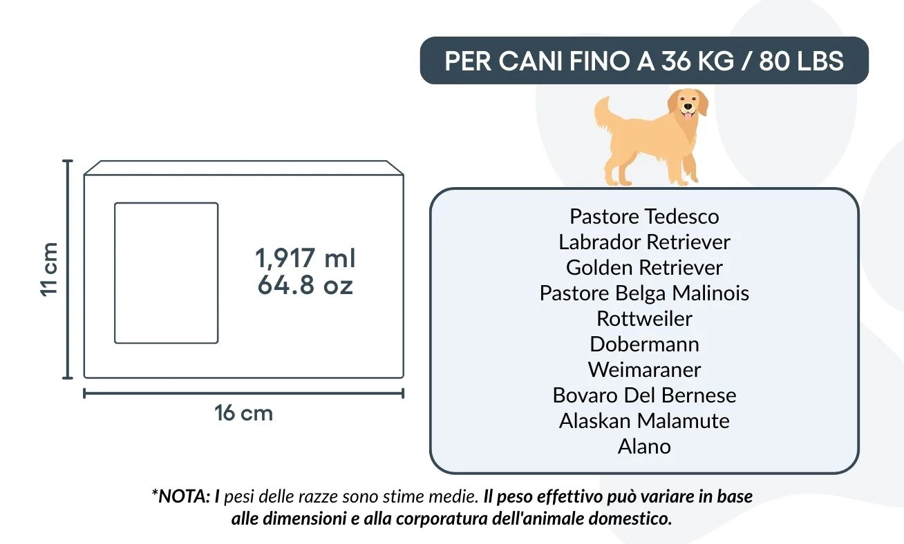 Size / Urn Capacity: 18 cm (L) x 12.2 cm (W) x 12.5 cm (H) | ~2,869 ml / 175 cubic inches / 101.6 oz | for dogs up to 95 kg / 204 lbs