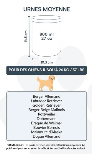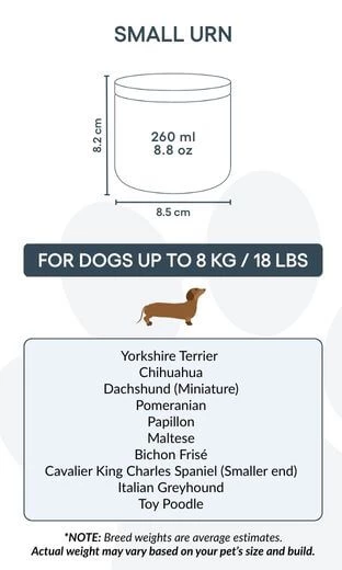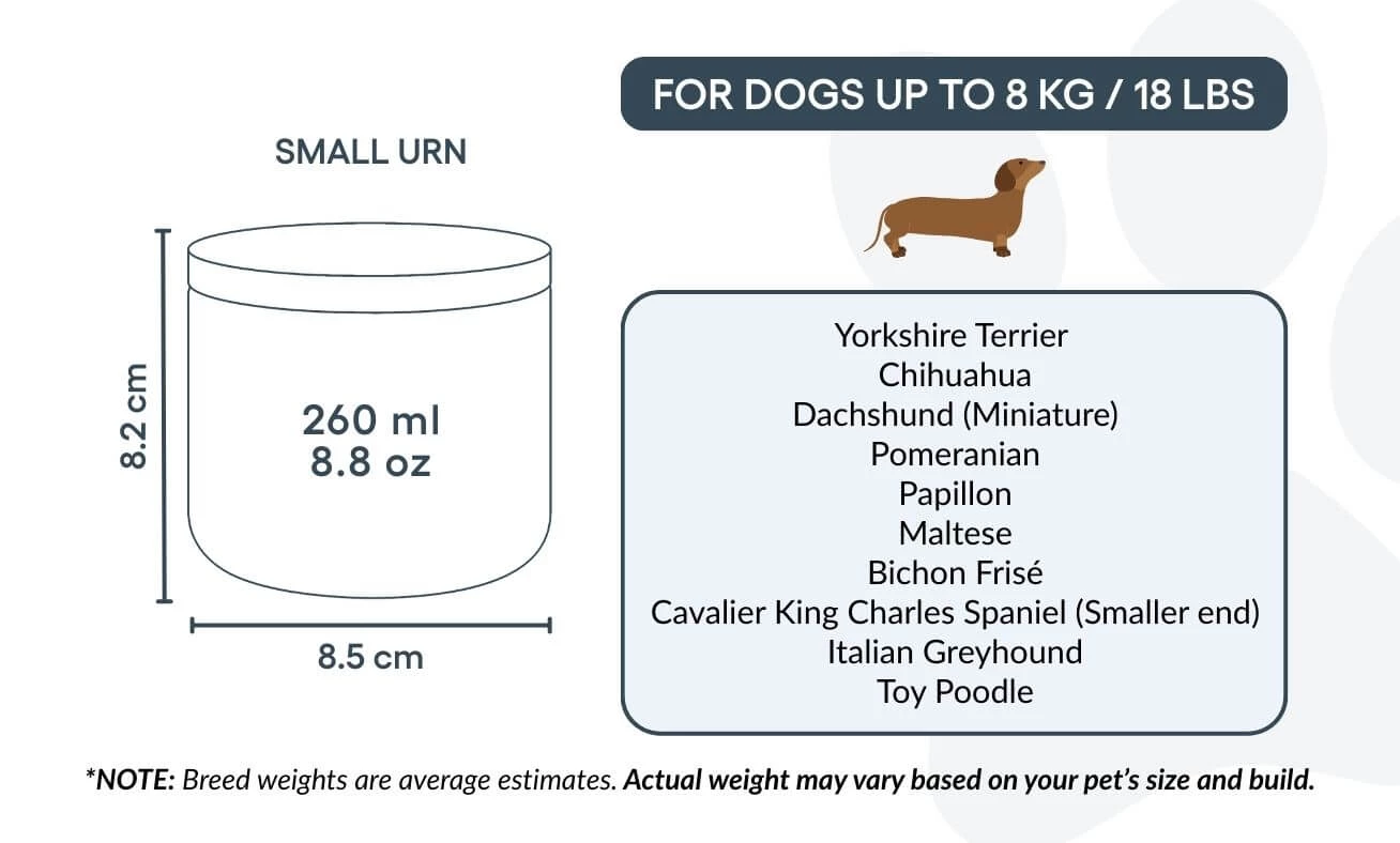 Perfect for pet cremation, this ceramic urn is available in two sizes to suit dogs up to 26kg. Whether displayed on a shelf or tucked into a private memory spot, this urn with photo is a respectful way to keep your companion close.