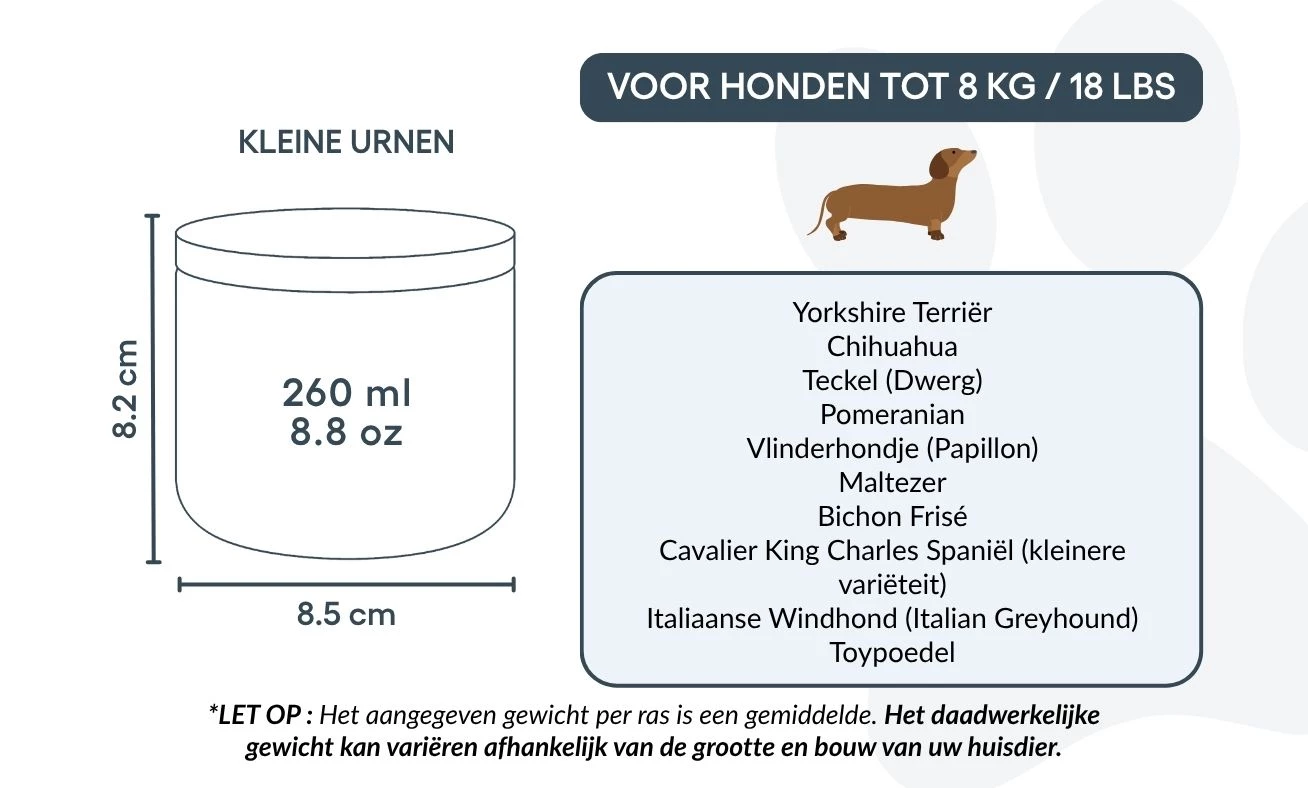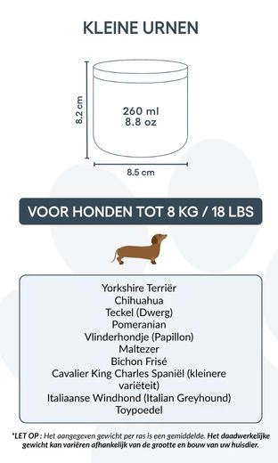Small: 8.5 cm (W) x 8.2 cm (H) x 8.5 cm (L) | 260ml / 8.8oz |for dogs up to 8kg / 18lbs